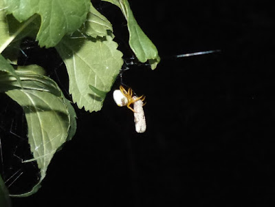 ラッピングした獲物を手元に手繰り寄せる際に暗闇で歩脚が何度も空を切る(空振りする)のが微笑ましく思いました。