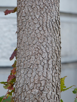 ひび割れた樹皮が特徴的で、カキノキの樹皮に似ていると思いました。