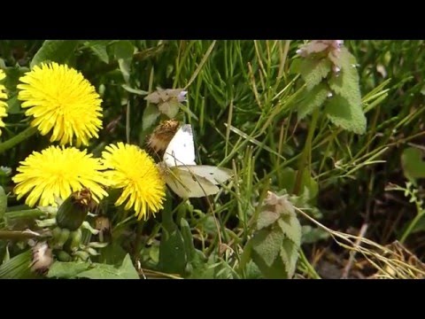 セイヨウタンポポの花蜜を吸うモンシロチョウ