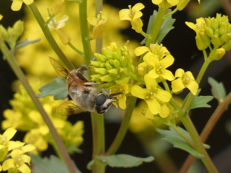 その群落でナミハナアブ♀(Eristalis tenax)が訪花していました。