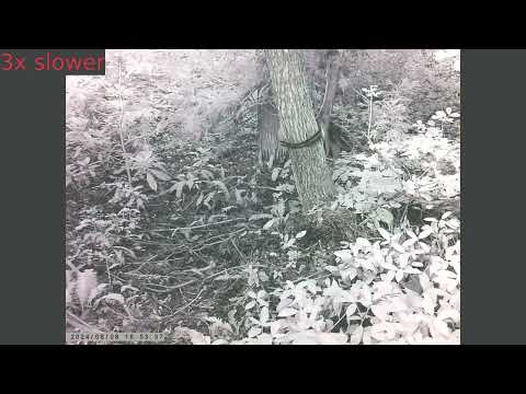 監視カメラが起動したときには、ニホンリス(Sciurus lis)がミズナラの幹を下から登りかける途中でした。