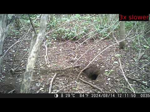 平地の二次林でニホンアナグマの営巣地(セット)を見張っている監視カメラに