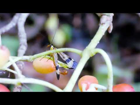 餌となるマルバゴマキ熟果にベッコウシリアゲ♂が長々と居座っていたのは、おそらく♀に求愛給餌(婚姻贈呈)するためと思われます。