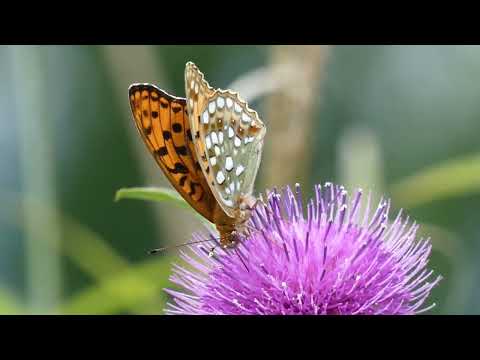 筒状花に口吻を深く差し込むウラギンヒョウモン♂の顔に白い花粉が少し付着しているので、ハナバチ類ほどではなくても、少しは授粉に貢献しているのかもしれません。