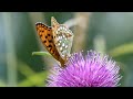 ノアザミの花蜜を吸うウラギンヒョウモン♂